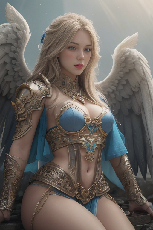 A Beautiful female angel,ornate armor,angel wings,looking to the side,1girl,\(full body view:1.6\),The posture of the god descending,looking at viewer,beautiful eyes,beautiful face,floating hair,hair between eyes,There is light behind it vear fantasy,granblue fantasy, a sserafimsakura,hyper realistic,lifelike texture,dramatic lighting,Nikon RAW photo,8k,Fujifilm XT3,masterpiece,best quality,realistic,(photorealistic:1.4),ultra detailed,extremely detailed face,, blue eyes,blonde hair,long hair,<lora:Maeylin-06:1>,
