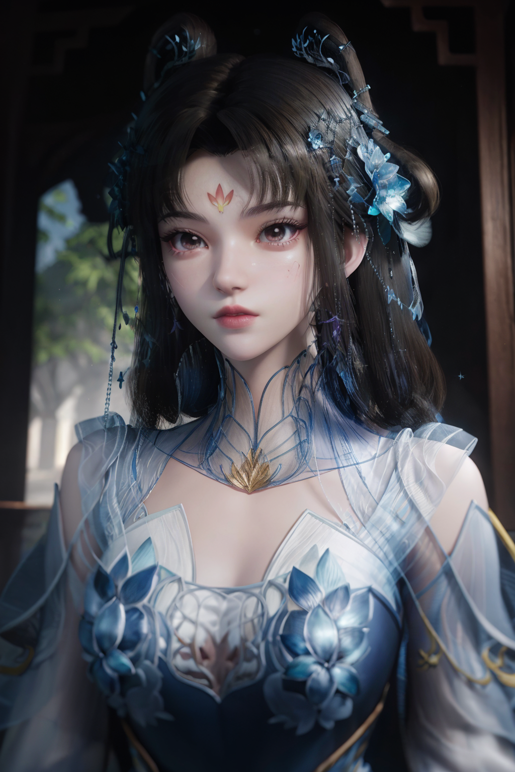 breathtaking <lora:ChengLing>,chengling,blue dress,1girl,forehead mark,hair ornament,facial mark,upper body,sparkle,glowing,hair rings,dress,solo,long hair,black hair,jewelry,white dress,pointing, . award-winning, professional, highly detailed, best quality , masterpiece, illustration, an extremely delicate and beautiful, extremely detailed ,CG,unity,8k wallpaper, Amazing, finely detail, masterpiece, best quality,official art,extremely detailed CG unity 8k wallpaper,absurdres, incredibly absurdres, huge filesize , ultra-detailed, highres, extremely detailed,beautiful detailed girl, extremely detailed eyes and face, beautiful detailed eyes,light on face,