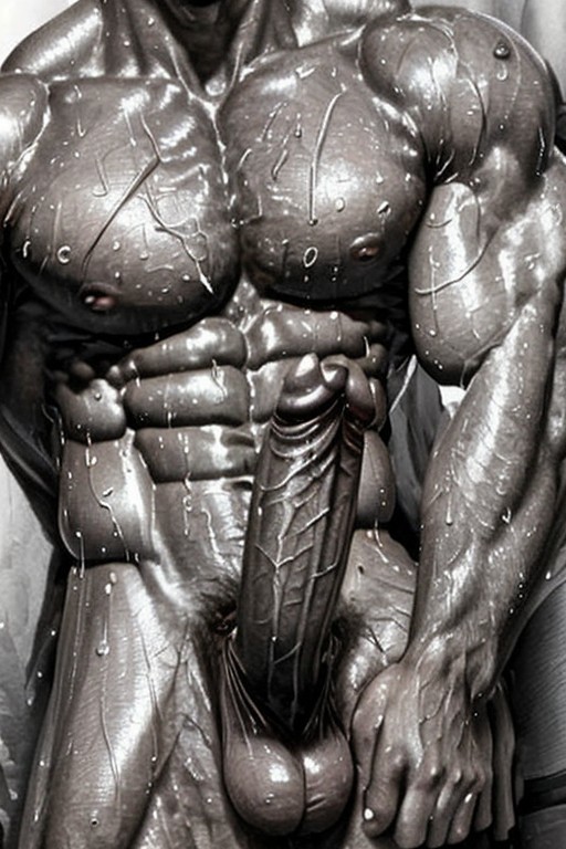 a handsome shirtless man with 8 abs and chest, skinny, sweat on chest, long penis, full body visible, handsome face, bitting lower lip, nipple piercing, Asian male, muscular feet, testicles, erection, male pubic hair, veins, realistic, veiny penis, perfect penis, depth of field, full body in view