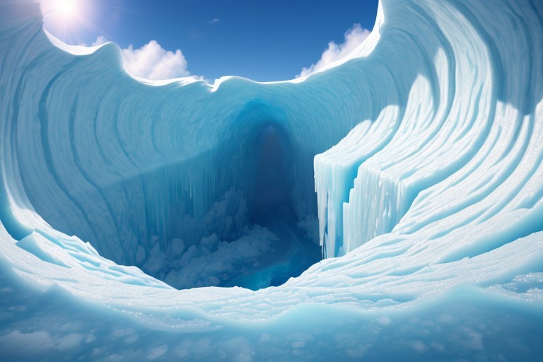 overlooking frosty mountain tops, icy glaciers, frost dripping clouds, on an exotic planet, ice is white and blue, cloud frost is white and blue, mountain dirt is red, ((giant crevasse in the middle))