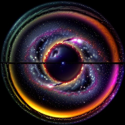 (galaxy view with vibrant colors details:1.5) with galaxy view in background, black background, vibrant colors, dark violet details, dark yellow details, high details, 4k, dark shot