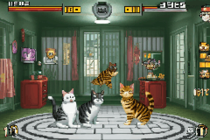 gbastyle, 1cat, indoors, video game, game boy advance video game screenshot, <lora:Game_Boy_Advance_Style:1>