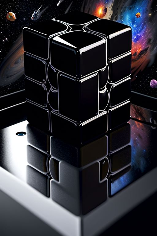 (((glossy))), chrome, hyper detail, one extra large perfectly (((square))) Rubik's cube, floating in the black void of outer space, 4k, Hyper realistic, splash art, concept art, mid shot, intricately detailed, color depth, dramatic,