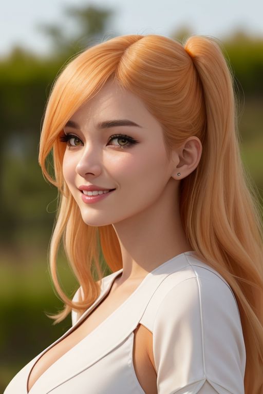 masterpiece,best quality,1 girl,solo,Super beautiful woman Danish.(kind face:1.3).(kind eyes:1.3).ultra detailed face.chiseled skin.thin eyebrows.pointy nose.maternal,droopy eyes,parted bangs soft hair,(two side up:1.5),long hair,(apricot hair:1.3),apricot eyes,curvy,large breasts,pale white skin,white Tailored fit dress,smile,university student,from the front,upper body,grassland