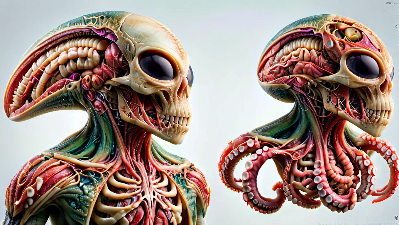 <lora:epoxy_skull-sdxl:0.6> epoxy_skull, ((Cthulhu)), tentacles, <lora:Cross_Section_Style_SDXL:1.1> ais-xsection, alien autopsy, (medical diagrams), annotated, (((alien writing))), (anatomical diagrams), alien anatomy, <lora:add-detail-xl:0.6> <lora:more_details:0.6> photo-realistic, 4k, highly detailed, white background with letters and pictures pointing to main picture