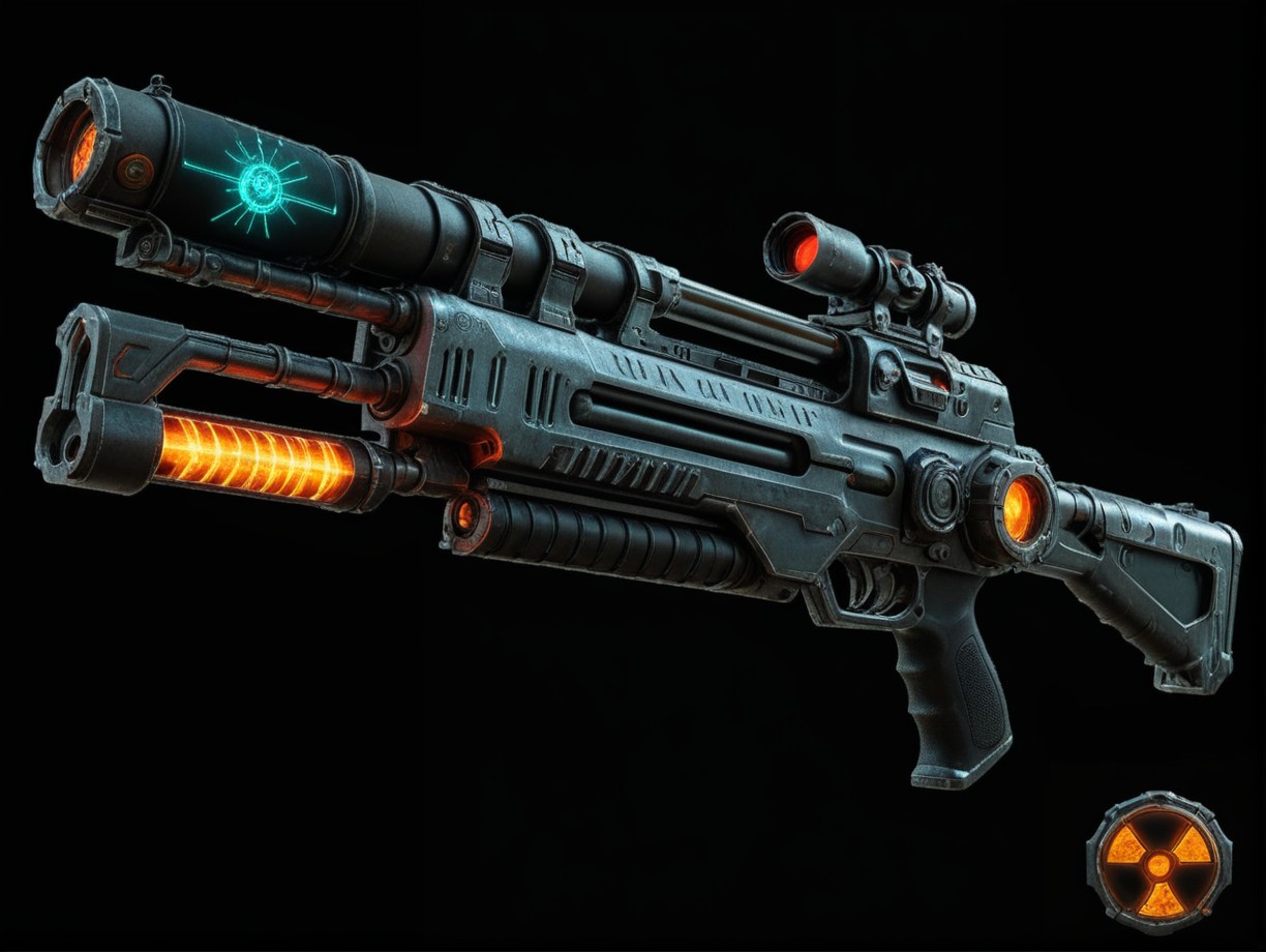 picture of gun handmade laser rifle nuclear cell science fiction futuristic glowing electricity Danger sign <lora:falloutgun:0.6:hr=0> falloutgun <lora:SDXL DET more_art-full_v1:0.2>