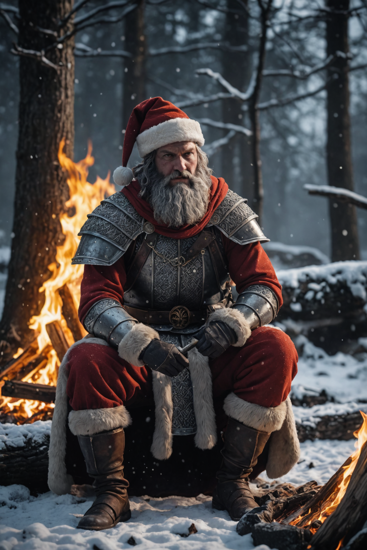 breathtaking cinematic photo dark souls warrior with (santa costume:1.2),sitting in front one bonfire dark souls,santa hat,snowing . 35mm photograph, film, bokeh, professional, 4k, highly detailed . award-winning, professional, highly detailed