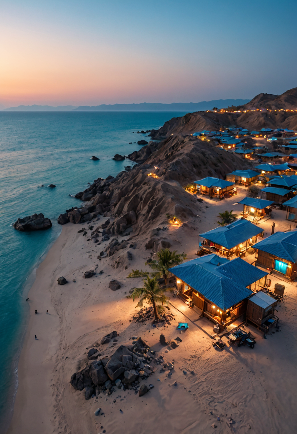 Asian desert village, ocean, shore, transparent blue water, dystopia, sci-fi, twilight, cinematic, dynamic lighting, bokeh, aurora, film, bokeh, professional, 4k, complex detail, film grain, noisy, chromatic aberration, <lora:xl_more_art-full_v1:0.5>, <lora:add-detail-xl:0.5>