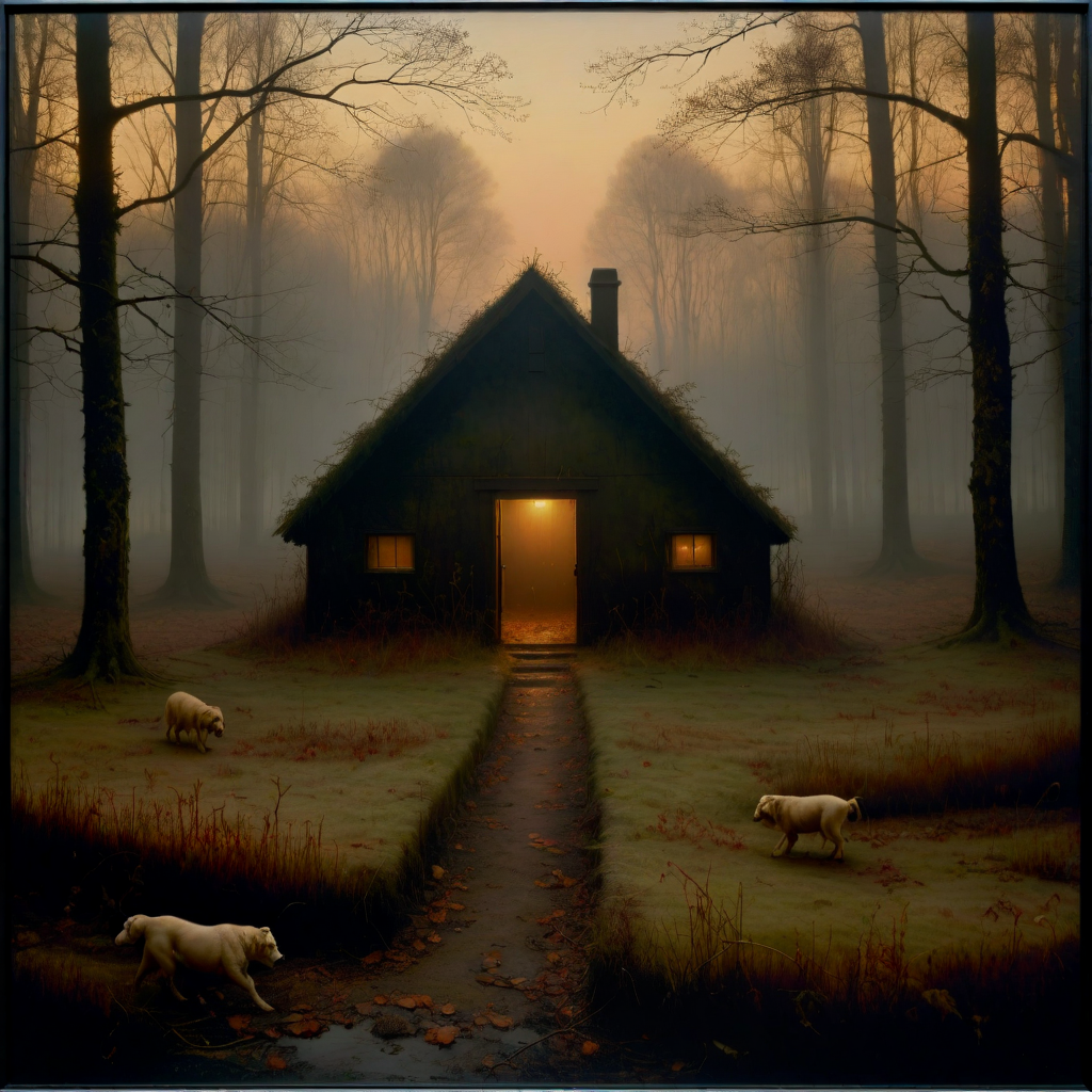 (dark art by Odd Nerdrum:1.2) , epic, Golden ratio, landscape of a (Kennel:1.3) from inside of a Neverland, it is very 2000'S and Crude, winter foliage with Foliage, Foggy, Graphic novel, Happy, Bardcore, back-light, F/1.8, Vivid Colors, dripping with Vivid, fairy tale,"A symphony of colors paints the horizon, as the sun bids farewell to the day.", lots of details, RTX