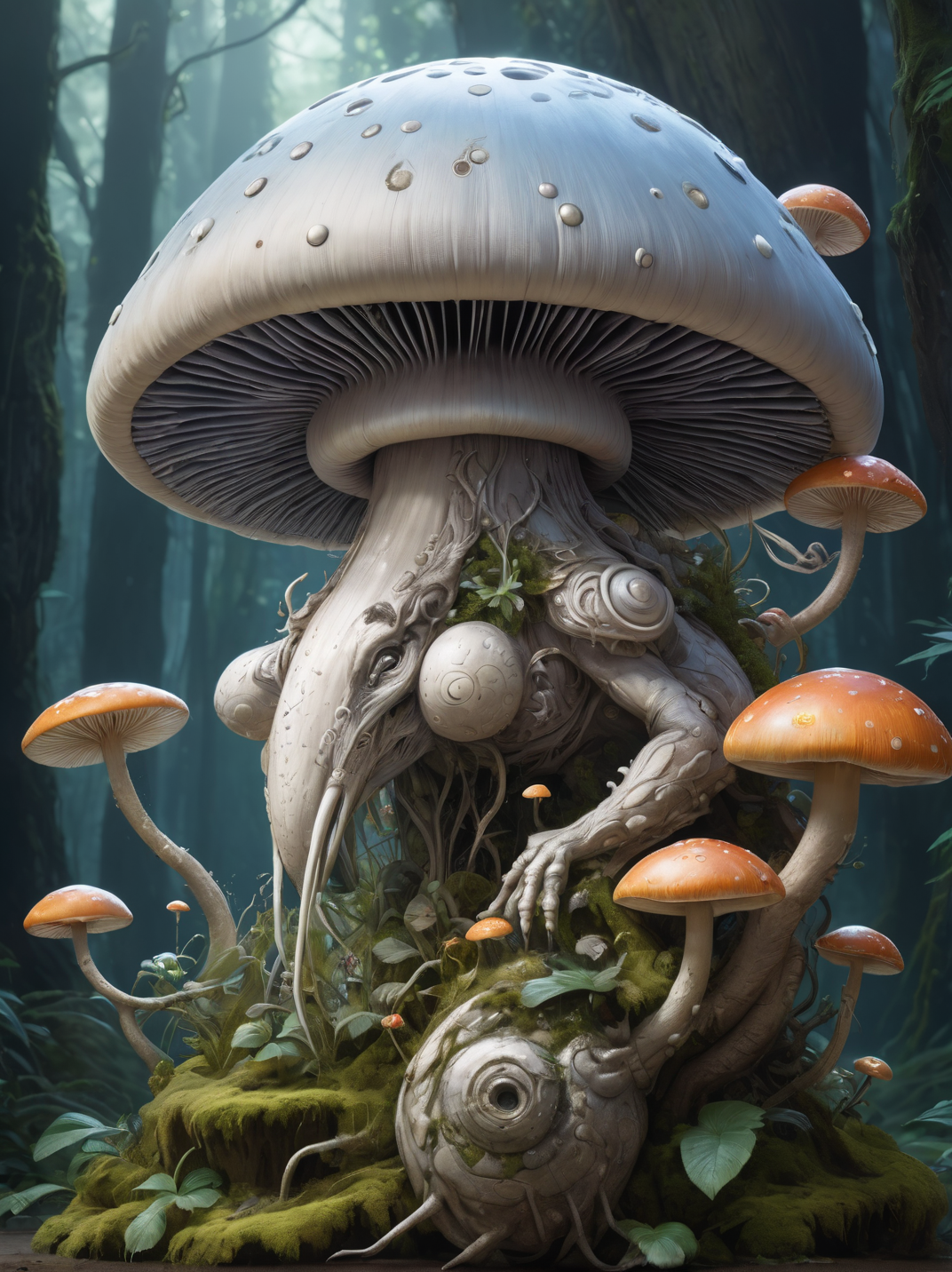 art by Yoshitaka Amano, anthropomorphic space mushroom DJ fantasy, intricate, elegant, highly detailed animal monster, digital painting, artstation, concept art, smooth, sharp focus, illustration, art by artgerm and greg rutkowski and alphonse mucha, 8k