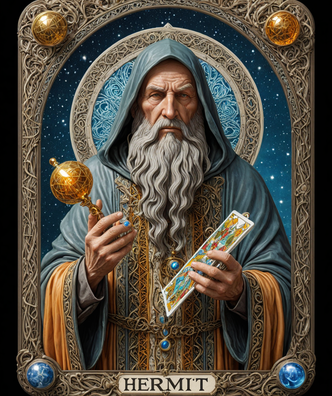 masterpiece, best quality, 3d statue by daturahex, Ultra realistic, RTX, ray tracing, amazing quality, masterpiece, best quality, hyper detailed, ultra detailed, UHD, Tarot card "The Hermit" Pattern <lora:DaturaHex-000008:0.8>