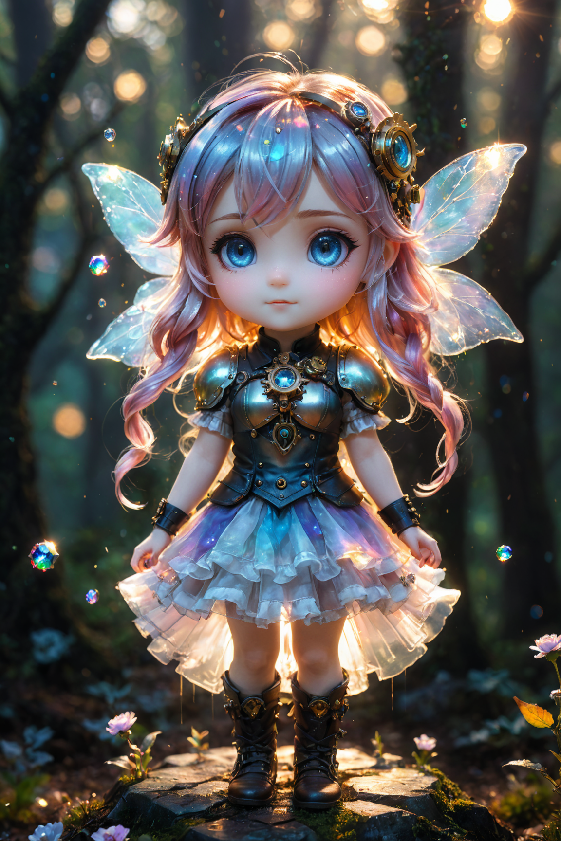 chibi wlop, fine art masterclass splash spray trickle daubs of rainbow opaline Prisma Sakuraoil color, Steampunk celestial ethereal ghostly Fairy, HDR, ultra high-detail, centered, bokeh, lens flare, foggy dusk, bloom, light bloom, cinematic lighting, high dynamic range, depth of field, full pose <lora:add-detail-xl:1> <lora:xl_more_art-full_v1:1>