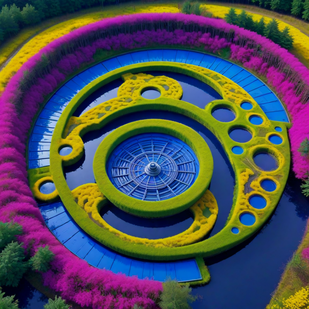 (designed by Victor Horta:1.3) , digital art, Hispanicore, best quality, Fashion shot of a 70s Art Twisted Russian (Sewage treatment plant:1.3) , it is covered in Paint, it is with deep indigo adornments, majestic, Azalea background, Stimulating forest with Marigold, Thunderstorm, tilt shift, Illustration, Sci-Fi, short lighting, Circular polarizer, Cyan hue, dark yellow outlines, sfumato, extremely beautiful, professional