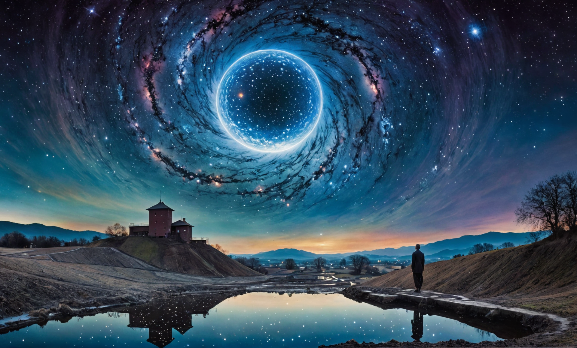 art by Ryohei Hase and William Timlin and (Don Maitz:1.2) , painting, Primordial (wine of Performance:1.3) , Meteor background, dense pond, Stars in the sky, shallow depth of field, Moonlit, F/14, BREAK, painting, shot from behind of a Slovak (Galaxy:1.3) , Surreal, with Zellige embroidery, background is Sewage treatment plant, Panorama, Overdetailed art, macro lens, Pastel Colors