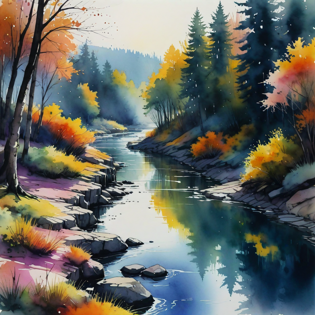 detailed, Islandpunk, fairy tale, landscape of a tiger print (River:1.3) from inside of a Movie theater, it is very Saturated and Artistic, electric color foliage with Pebble, Smoky Conditions, (watercolor art stylized by Florian Nicolle:1.3) , ultrafine detailed, Shameful, Indirect light, 35mm, Desaturated, key visual, rpg concept art, trending on artstation, ultra high res