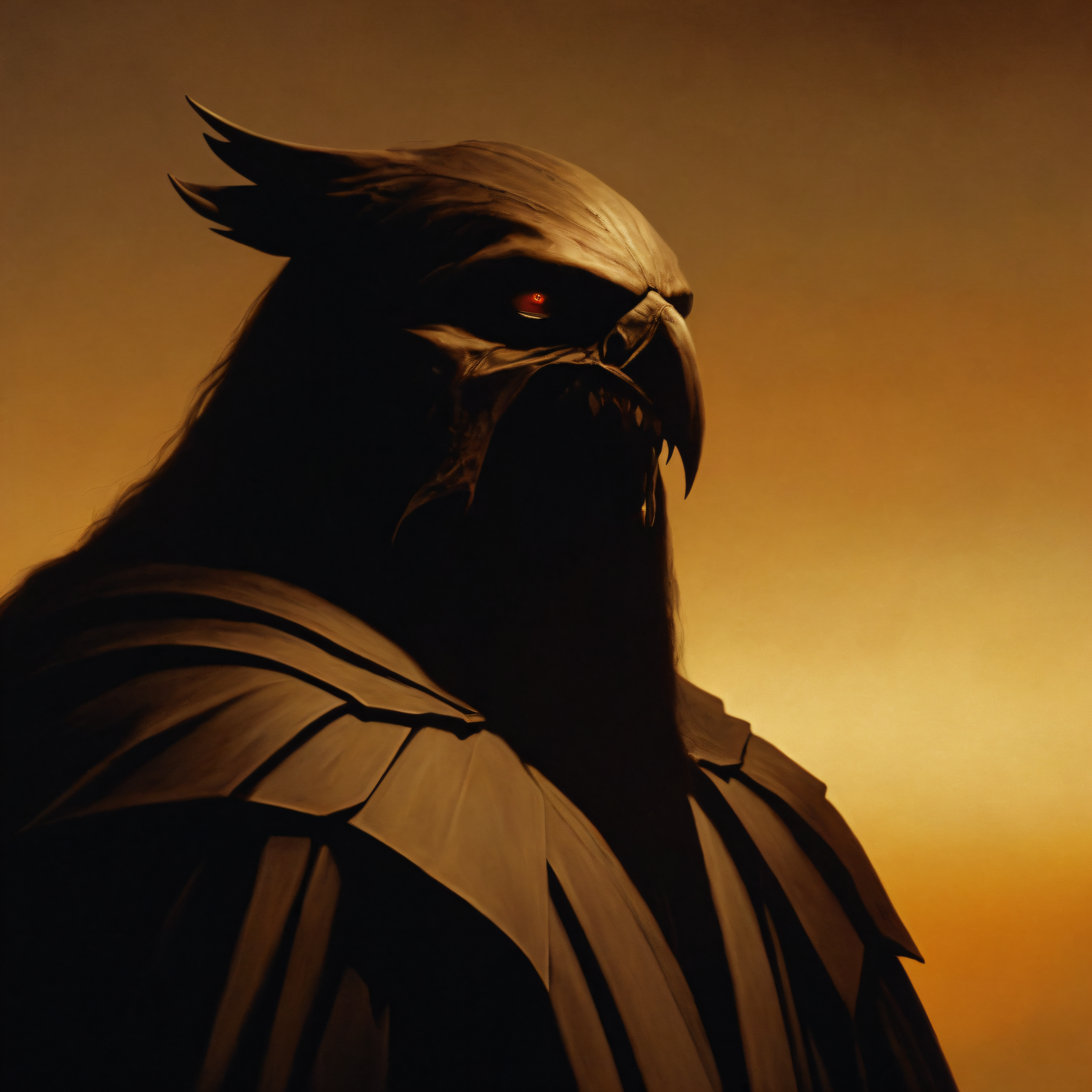 grimoire_noir, <lora:grimoire_noir:1>, (high contrast art designed by Jean Nouvel:1.3) and (Dmitri Danish:1.0) , [portrait,close up of a Lovely (Jay:1.1) , simple Sepia filter background, at Sunset, Very wide view, Awe, CGI Art, moody lighting, Low shutter, lots of details::5]