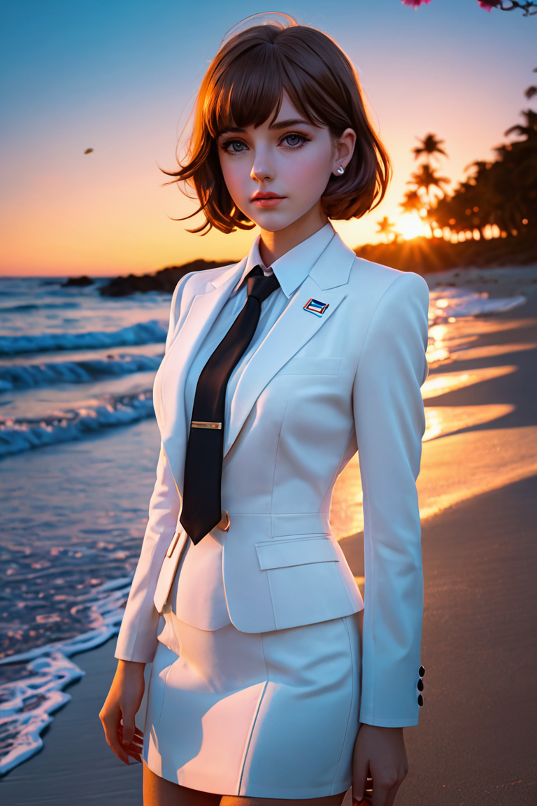 bioluminescent glow ilya kuvshinov, anime key visual of a girl wearing dress suit with tie on the beach at sunset sakura season. flat lighting poster by magali villeneuve and jeremy lipkin michael garmash intricate elegant retro future sharp focus illustration canon eos r 6 0 d mark iv 3 5 mm lens nikon f 1 2 4 x - h 8 w 704 film still promotional image global illumination ray tracing shadows flickr depth perception masterpiece fine artstation deviantart pinterest detailed high quality award winning golden ratio centered symm