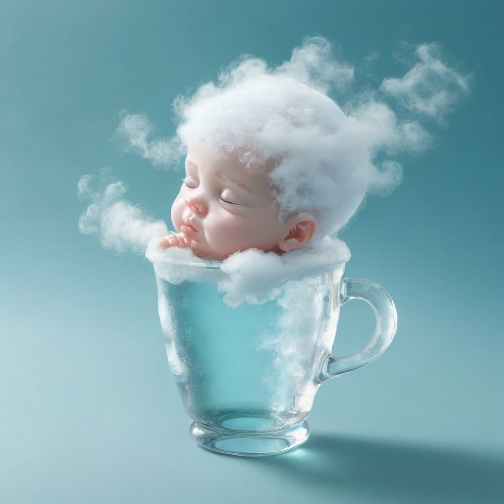 cloudy baby,drinking a cloud , cloud in a cup , glass cup , <lora:Ice:1>,