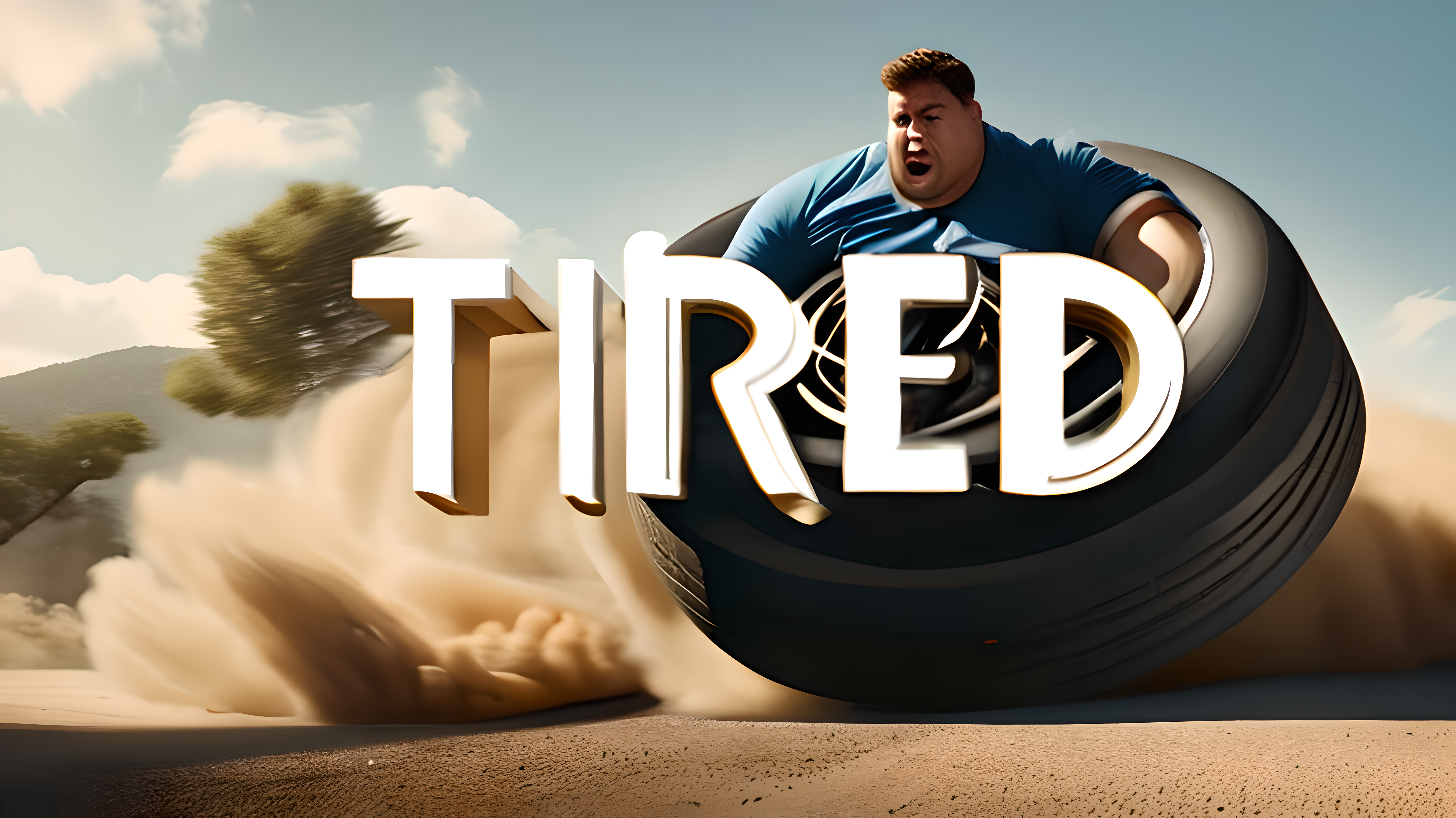 cinematic photo <lora:Harrlogos_v1.1:1.5>,("TIIRED" text logo),a fat man on the left getting struck by a tire on the right,action shot, . 35mm photograph, film, bokeh, professional, 4k, highly detailed