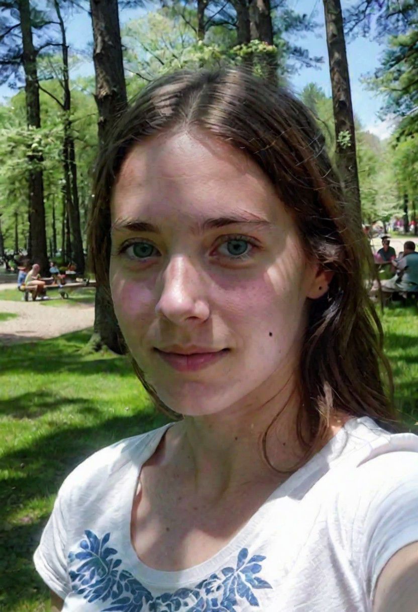 (candid poorly lit poorly exposed poorly composed low-quality vacation closeup photo in phst artstyle) (with natural lighting and dynamic angles) (that has been poorly shot with a iphone 6 nokia 6600 cell phone camera) by an amateur storm thorgerson) (and uploaded to facebook on 17.05.2012) (and that is capturing the moment of a happy woman Sarah) (25 years old woman:1.5), (with extremely detailed skin and round eyes with extremely detailed pupils and irises and brown hair) (wearing a white tshirt in a park) (and taking a selfie while looking into the camera) (in spring with a clear blue sky at noon), abcdefghijklmnopqrstuvwxyz