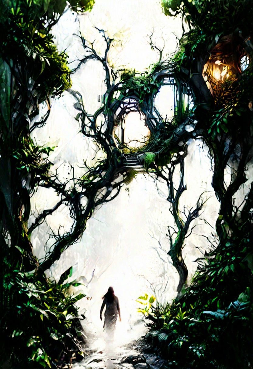 modern building, jungle, volumetric light, insanely detailed and intricate, hyper realistic, super detailed, fantasy,