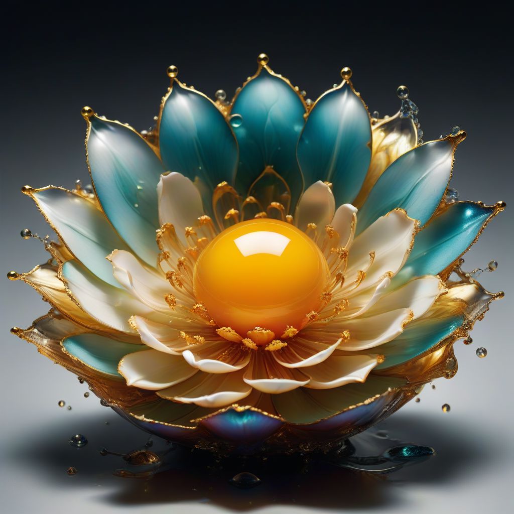 macro photography, 3d, a marvelous egg flower made by splash it on the floor, breathtaking, very unusual, epic, masterpiece, highly intricate, insane, digital painting, fluid, light particles, dreamy, alcohol ink, smooth, shimmering, dreamy glow, conceptual art by alberto seveso, salvador dali, anna dittmann, arthur rackham, 16k