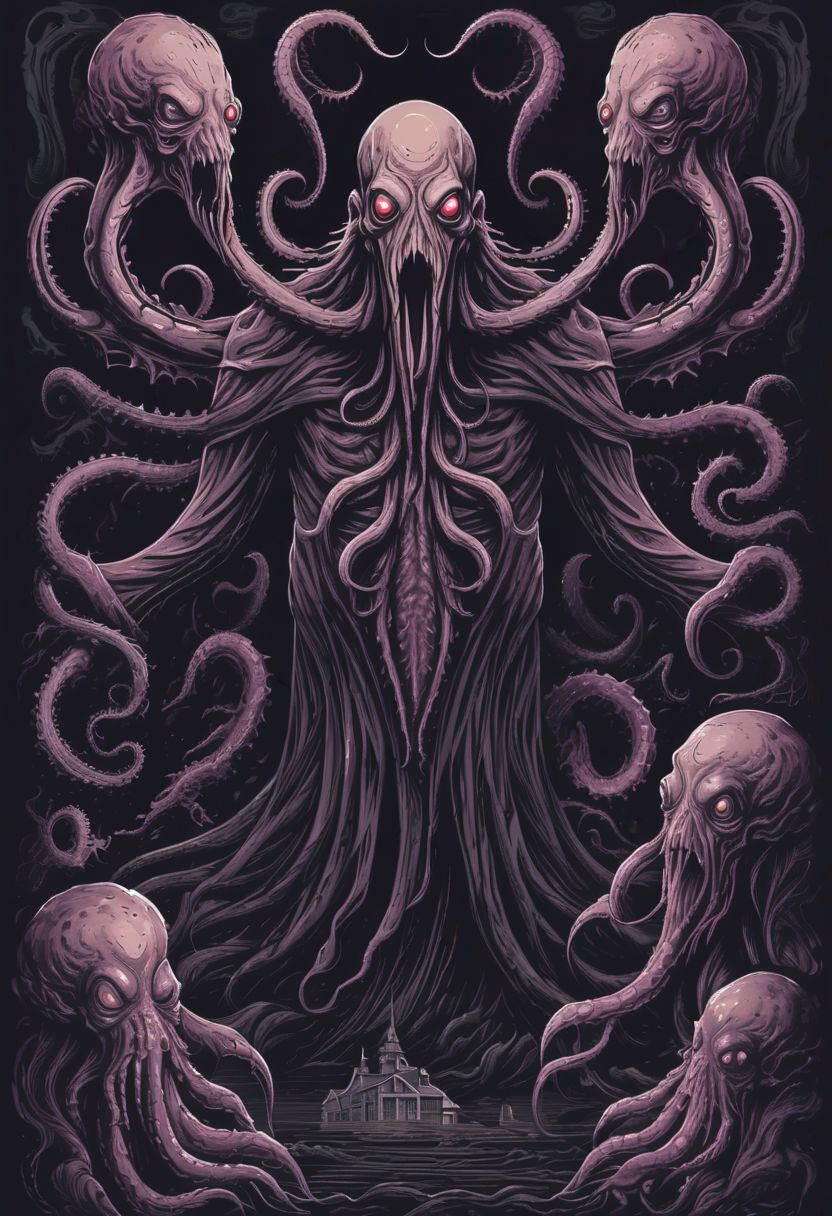 lovecraftian nightmare, horror, limited dark color palette