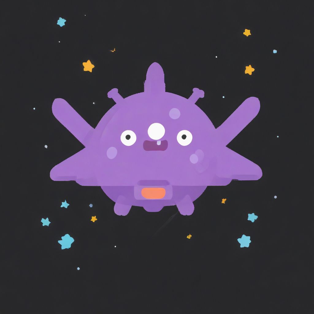 MINIMALIST ICON, FLATXL, minimalistic, vector art, lean lines, illustration, graphic design, vector graphics, little spaceship in space with monster