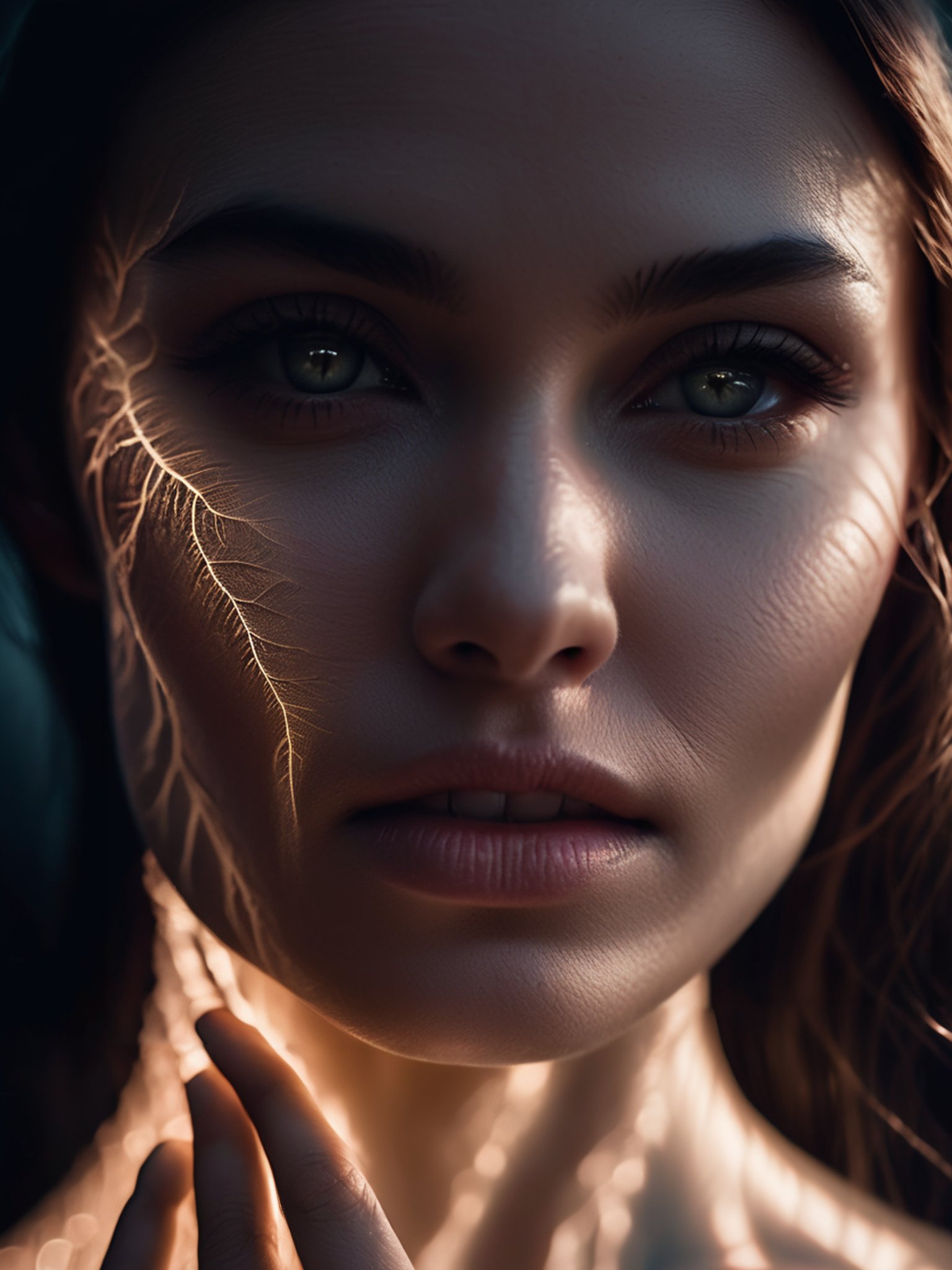 ((photorealistic)), picture of an ethereal woman, intricate details, textured translucence skin with veins like made of (glowing light:1.2), ((dark scene:1.4)), dynamic light, volumetric radiance, <lora:add-detail-xl:0.8> <lora:sdxl_photorealistic_slider_v1:1>, perfect eyes, <lora:PerfectEyesXL:1>, (cinematic, 8k)