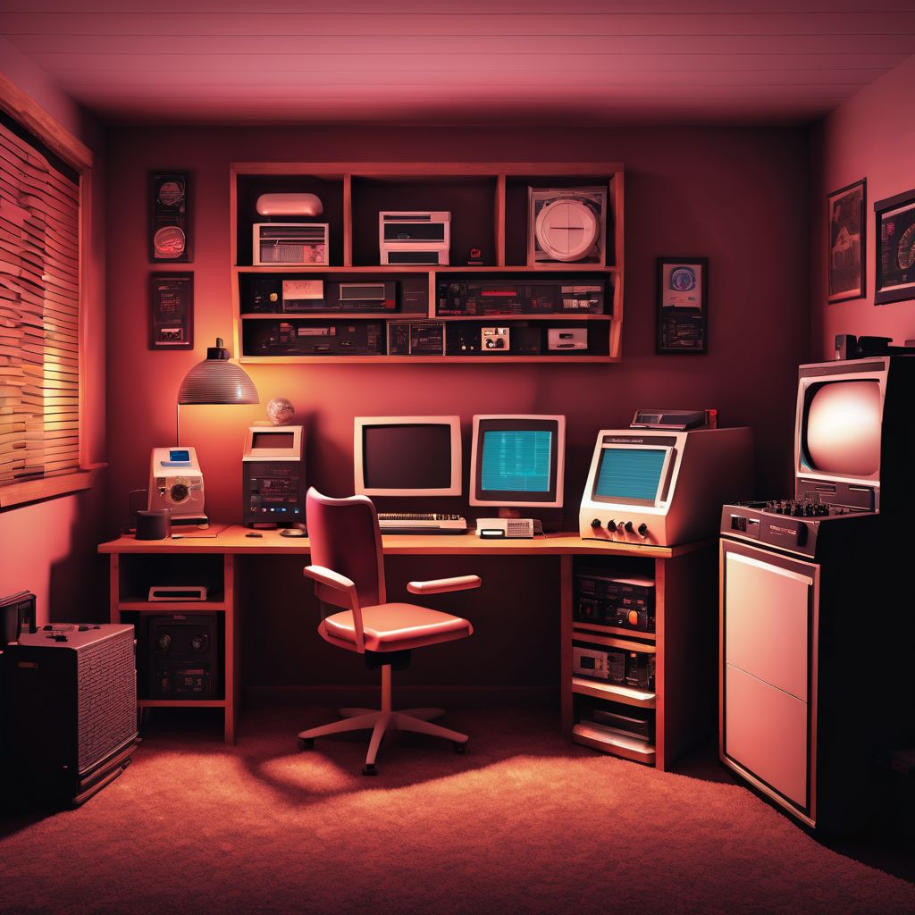 retro, computer, gaming room, ham radio, 3d printer, high detail, 8k