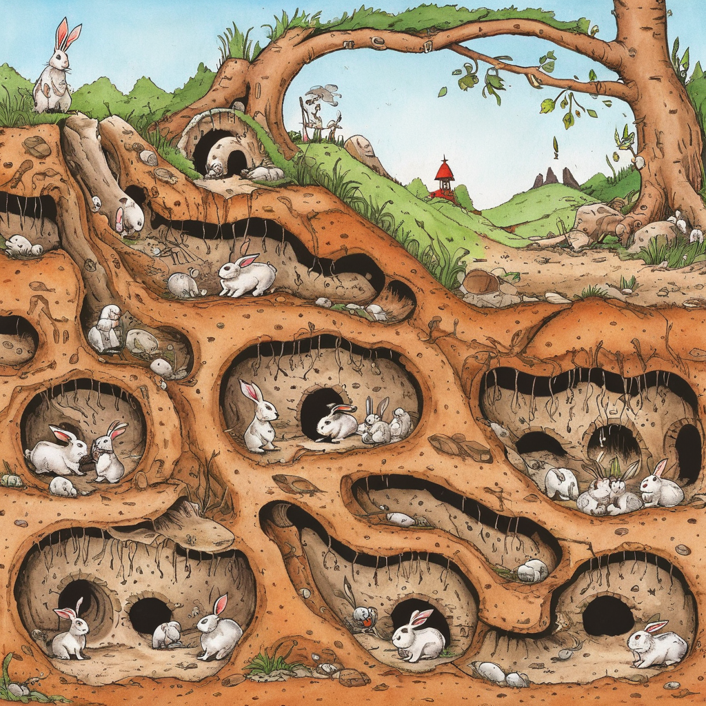 bright colorful cartoon, intricate rabbit warren,detailed,cross-section,underground, ,<lora:warren_sdxl:.8>