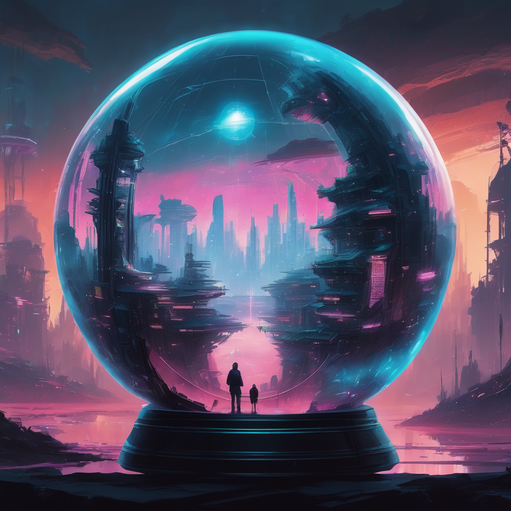 magic world in crystal ball, cyberpunk world, spielberg style