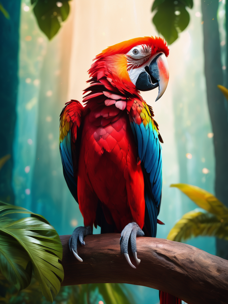 ethereal fantasy concept art of stunningly beautiful, intricate details, ultra-realistic, high saturation, cinematic light, 35mm raw ,red macaw, . magnificent, celestial, ethereal, painterly, epic, majestic, magical, fantasy art, cover art, dreamy