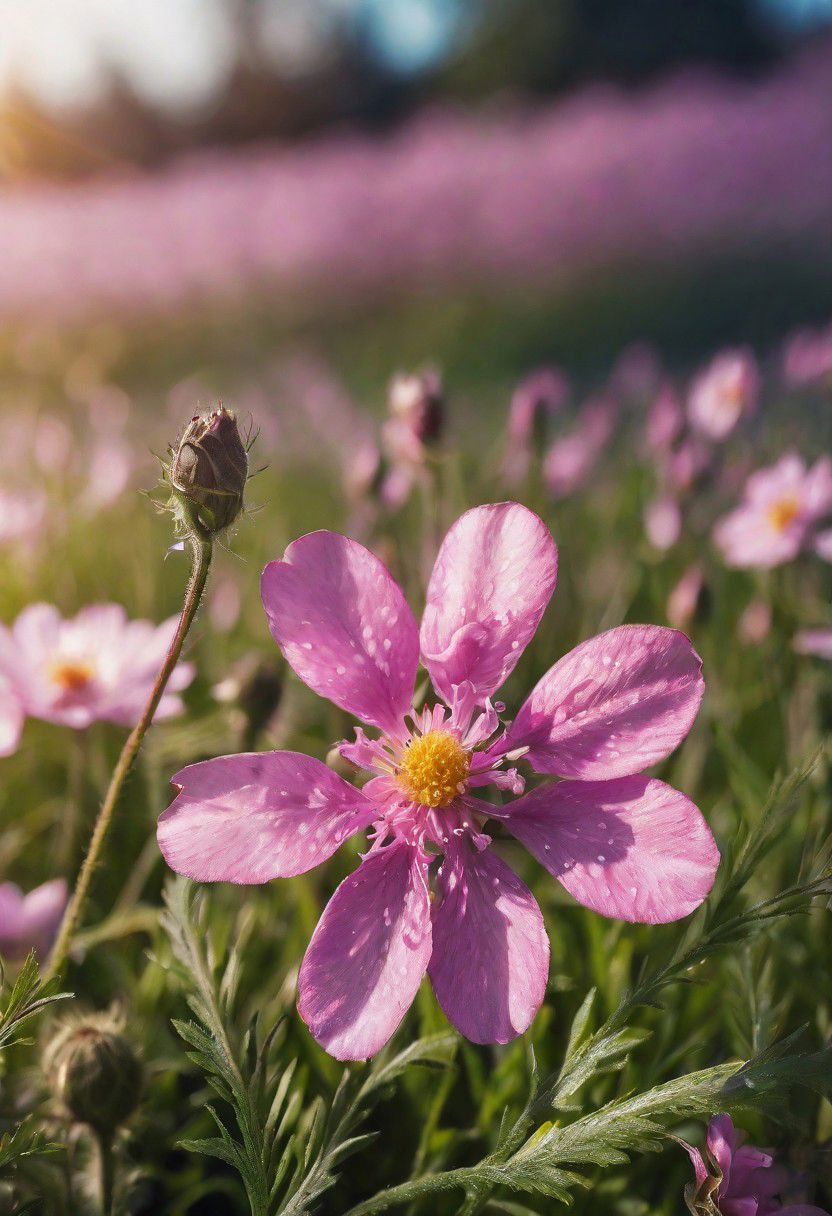 at noon, plain, small wild flowers, garden, bushs, summer, sky, clouds, photo realistic, wide view, ultra hd, realistic, vivid colors, highly detailed, UHD drawing, pen and ink, perfect composition, beautiful detailed intricate insanely detailed octane render trending on artstation, 8k artistic photography, photorealistic concept art, soft , Miki Asai Macro photography, close-up, hyper detailed, trending on artstation, sharp focus, studio photo, intricate details, highly detailed, by greg rutkowski
