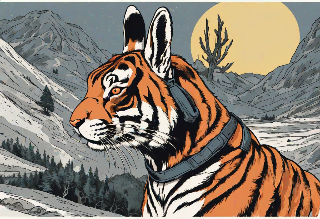 A buff strong easter bunny with a scar on his left eye chewing a orange carrot
