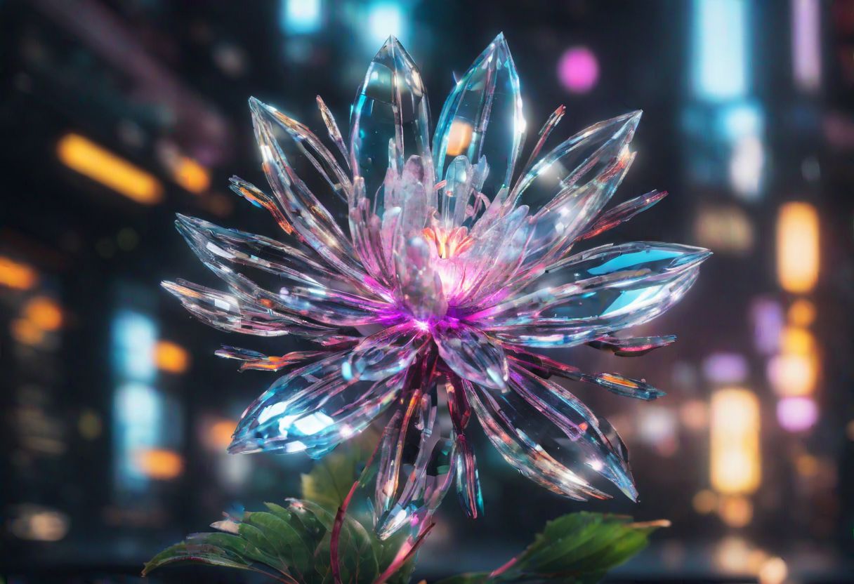 A (digital crystal cyberpunk flower:1.3), digital art, HDR, good lighting, bokeh, f1/4