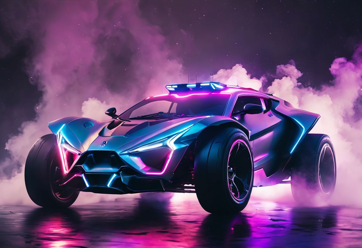 front view, ultra realistic, of a ariel nomad with headlights on, a light bar on the roof shining bright beams of white light, background of colorful smoke, 8k stunning artwork, vapor wave, neon smoke, hyper colorful, stunning art style, car with holographic paint, amazing wallpaper, futuristic art style, 8 k highly detailed, 4k phone wallpaper, inspired by Mike Winkelmann, ,H effect
