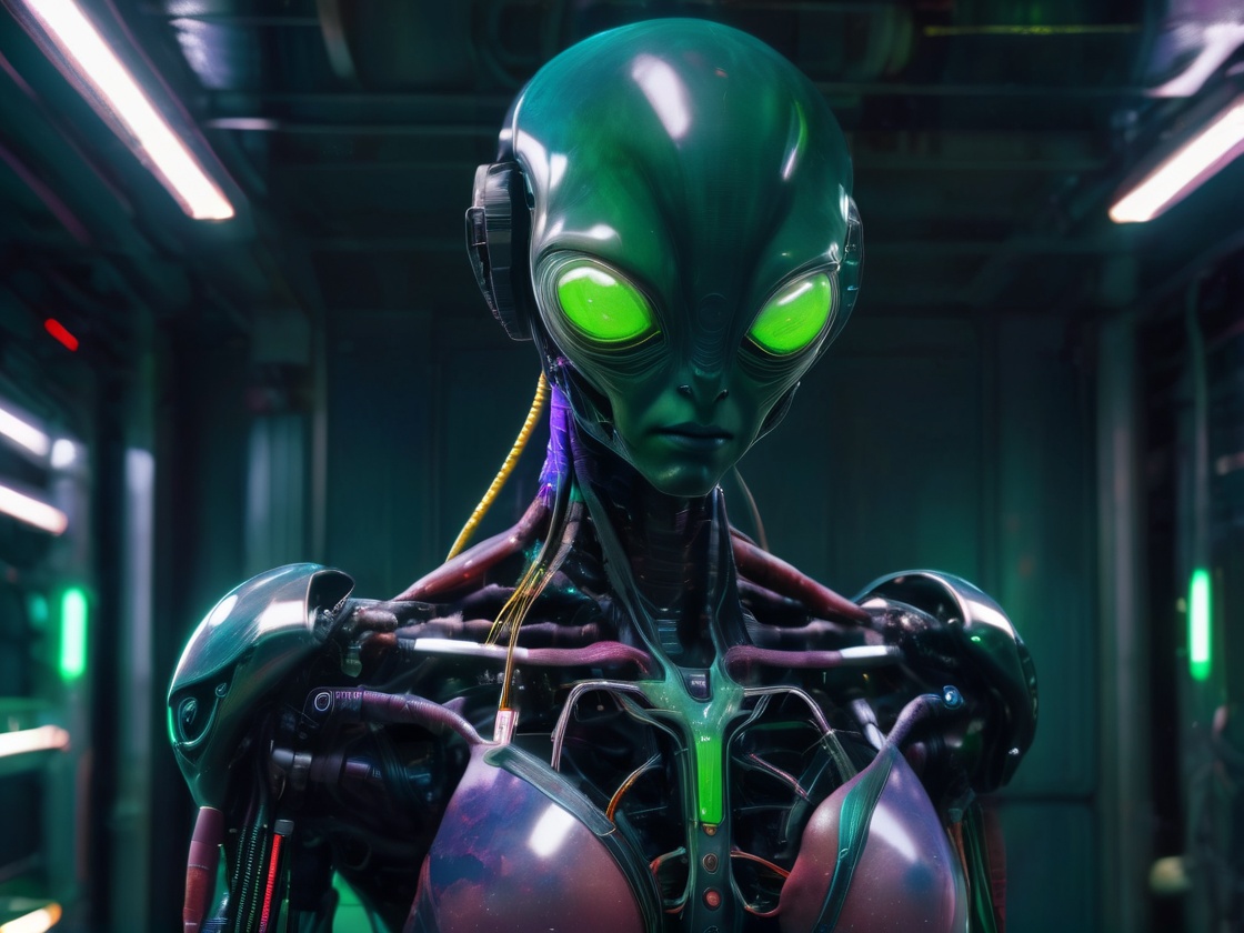 photographic,(a slimy alien humanoid creature,full body, locked up, immersed, levitate inside a biotech scifi cylindrical tank container totally filled with greenish water:1.3), secret experience lab, suspended foreign lifeform, wires, tubing, colorfull, dark vibes, highest detailed,cinematic light, (cultivation tank:1.05), bubble, barefoot, air bubble, anklet,machine made joints,blood vessels connected to tubes,mechanical vertebra attaching to back,mechanical cervial attaching to neck,expressionless,wires and cables attaching to neck,wires and cables on head,character focus,science fiction, highest detailed,<lora:SDXL Science Fiction :1> science fiction style