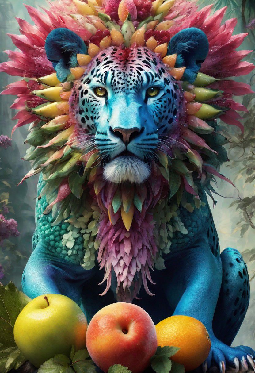 Generate a highly detailed and high-resolution image showcasing a mesmerizing hybrid creature formed by the fusion of a specific fruit and animal. Let your creativity guide you in selecting the fruit and animal for this unique hybrid. Capture intricate details, textures, and colors to seamlessly merge the characteristics of both elements. Pay special attention to the blending of anatomical features, ensuring a harmonious and visually compelling synthesis. Use lighting and shading to enhance the realism of this fantastical hybrid, creating an image that sparks curiosity and amazement.