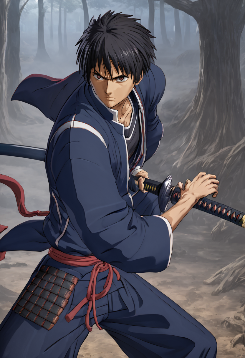 1boy, battoujutsu sword stance,ready to draw, sheath, sheathed,katana, serious, focused,agressive, 3d anime style, 3d fantasy background, <lora:battoujutsu-sword-stance:1>