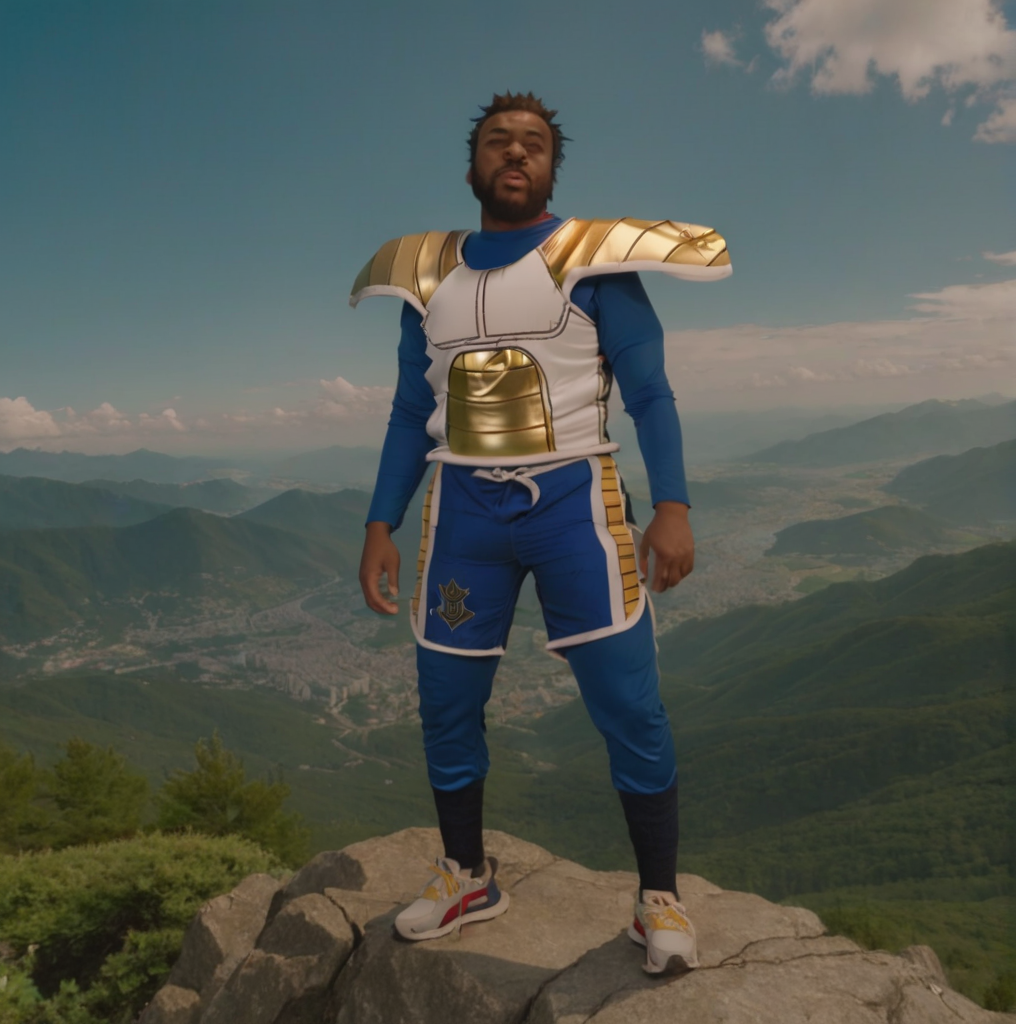 <lora:vagriiahxl:1> anime version of vgriiah, saiyan battle armor, saiyan vest, , on a mountain