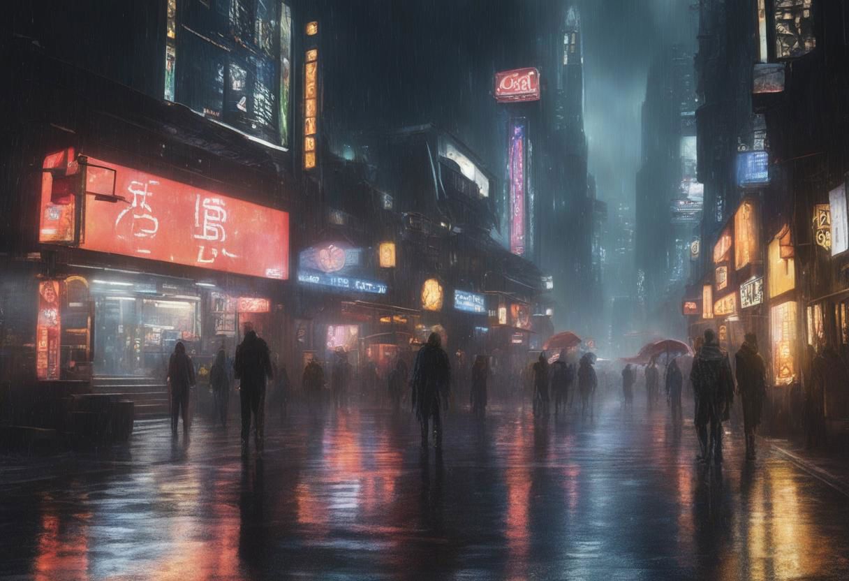 (scifi:1.5) street, futuristic marketplace, masterpiece, (realistic), night, ultra realistic, dystopic, dystopia, rainy, cyberpunk, blade runner, (sci-fi:1.5)