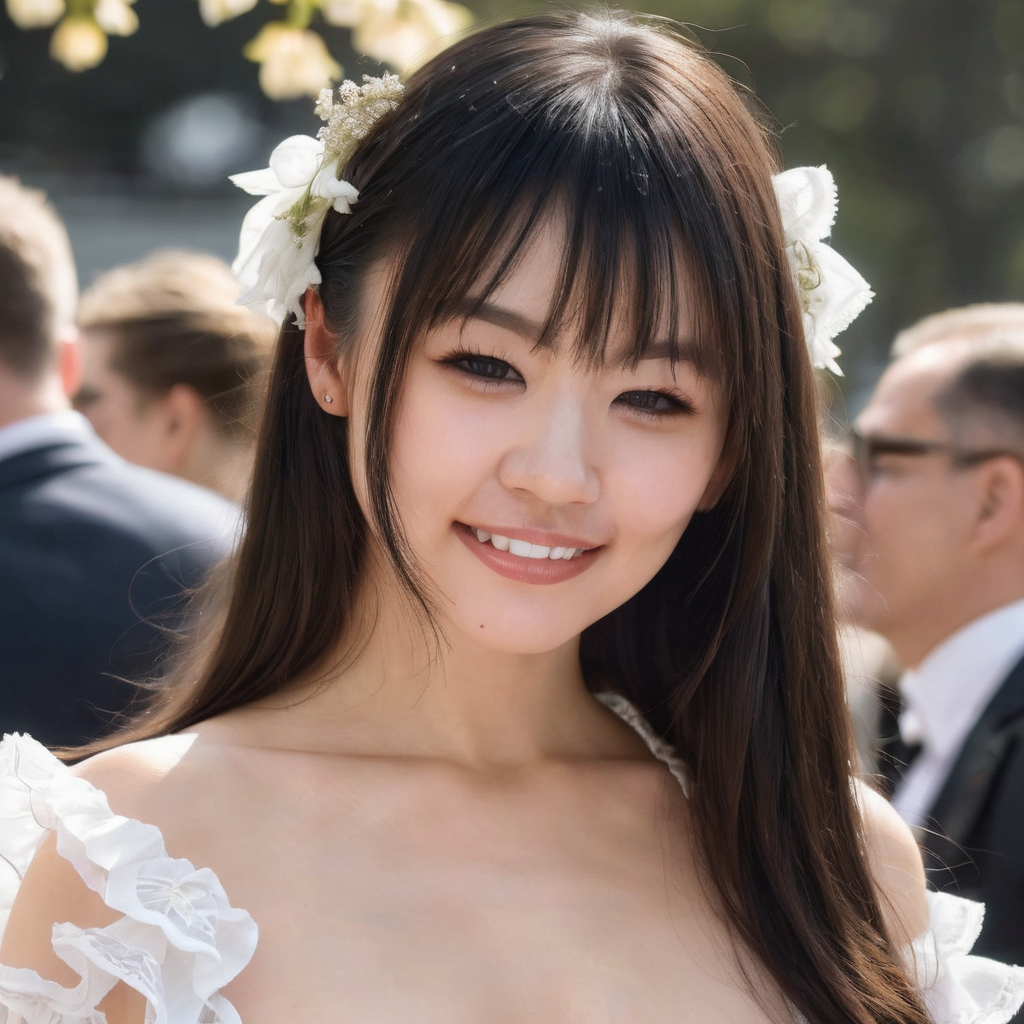Ultra-realistic extremely high quality breathtakingly detailed 8k photo of <lora:tsubomi woman:1> looking cute in a frilly dress, (extremely eyes, teeth and detailed facial features)