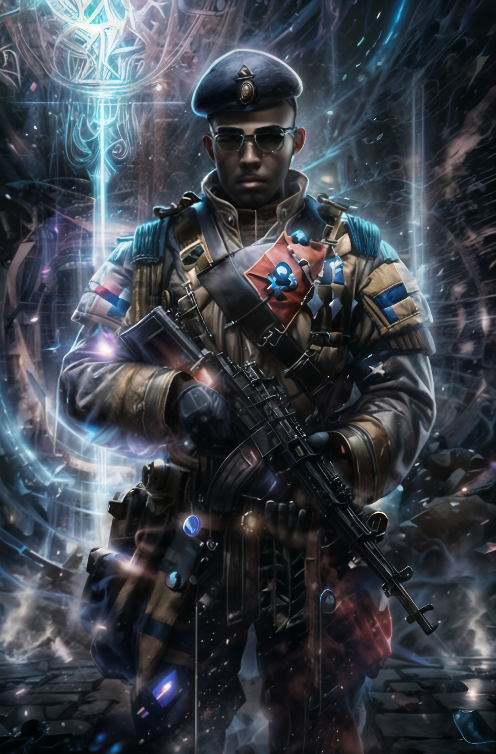 (Photorealistic) (((Best Quality))), ((Masterpiece)), (Detailed), Photorealistic, (black man wearing tactical gear:1.2), holding gun, realistic background, night, fog, Inferno, ambient occlusion, volumetric lighting, <lora:add_detail:1> Negative prompt: BadDream, UnrealisticDream, rmadanegative4_sd15-neg Steps: 30, Sampler: Euler a, CFG scale: 7, Seed: 1202013699, Size: 512x768, Model hash: e9d3cedc4b, Model: realisticVisionV40_v40VAE, Lora hashes: add_detail: 7c6bad76eb54, Version: v1.3.0