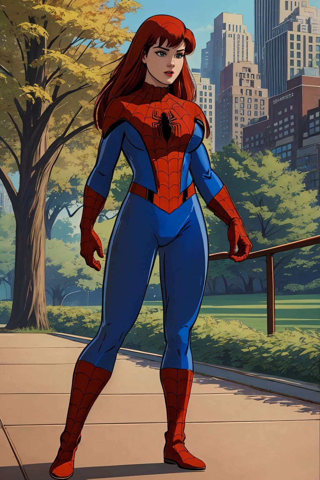 masterpiece, best quality, spider-man costume, nomask, mary jane watson <lora:Mary Jane Watson_v1:0.8>, standing, central park <lora:Spider-Man Costume_v1:1>