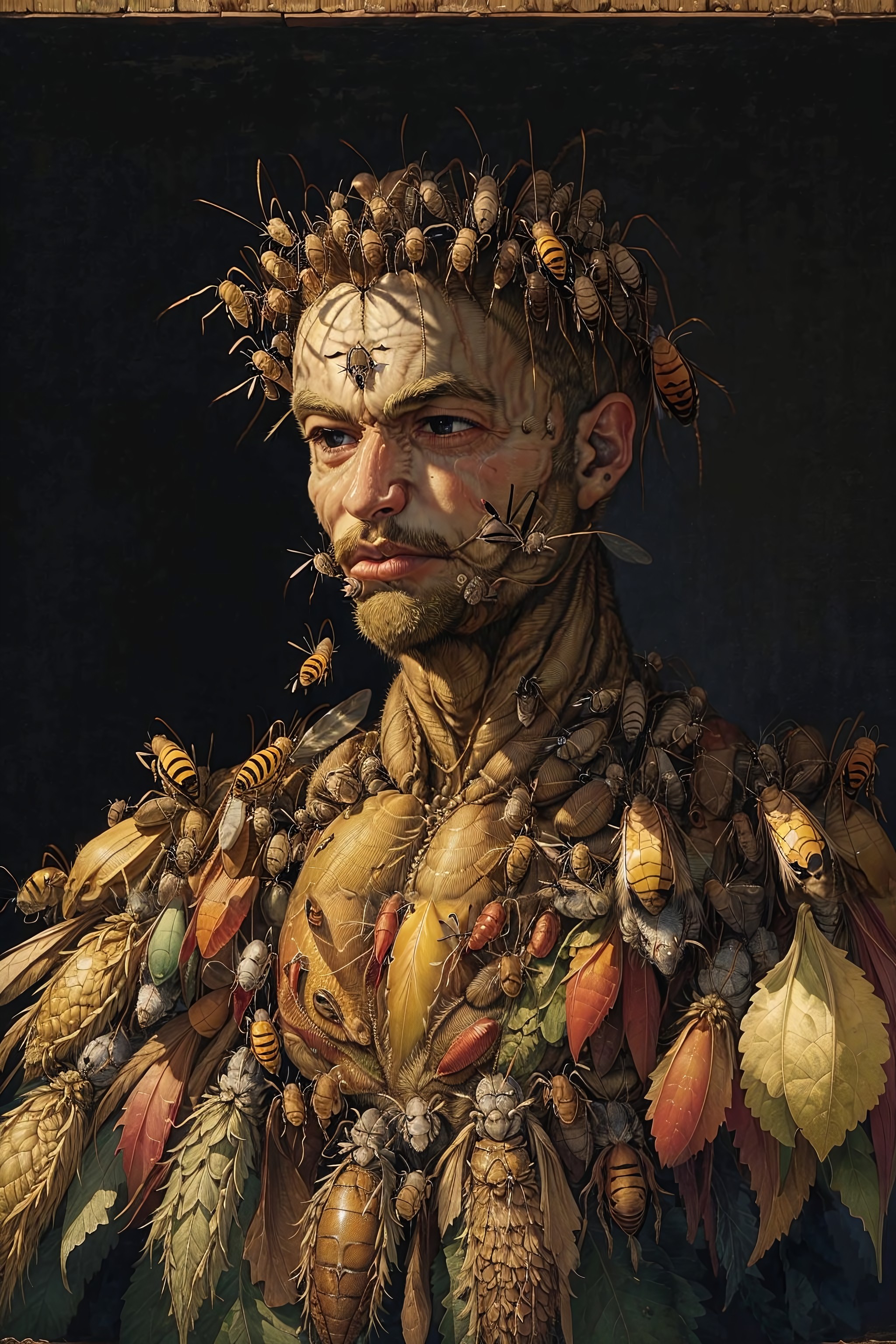 (masterpiece, top quality, best quality, official art, beautiful and aesthetic:1.2), GA Human, a man, made of tiny spiders insects scorpions bugs flies bees <lora:GiuseppeArcimboldo:1.0>