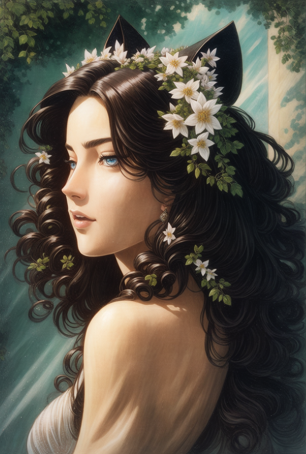 <lora:ÐкваÑелÑнÑй ÑÑÐ¸Ð»Ñ Rebecca_Guay:1>, <lora:ÐоÑка-девоÑка из Ñок ÑоÑ(cyan, animal ears, cat ears,tail,blue eyes,black hair,curly hair):0.7>,cyan, animal ears, cat ears,tail,blue eyes,black hair,curly hair, 1girl in full growth, best quality, masterpiece, ultra-detailed, high quality, perfect nose, highly detailed skin, warm skin tone, defiance512, RAW photo, best quality, high resolution, (masterpiece), dreamlike, dreamy, modelshoot style, analog style, tonemapping, photorealistic, professional photography, sharp focus, HDR, 8K resolution, intricate detail, sophisticated detail, hyper detailed, (depth of field), highlight and shadow, volumetric lighting, cinematic bloom, professional light, looking at viewer, blotchy,