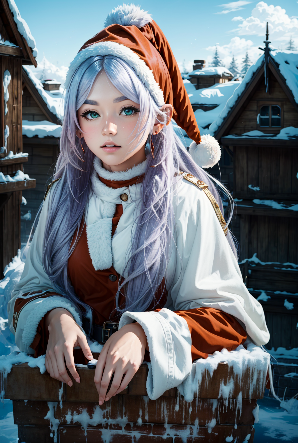 santa girl,stuck in chimney,<lora:СанÑа-девÑÑка заÑÑÑÑла в дÑÐ¼Ð¾Ñ Ð¾Ð´Ðµ(santa girl,stuck in chimney):1.2>, <lora:ФÑиÑен пÑовожаÑÑÐ°Ñ Ð² пÑоледний пÑÑÑ(Frieren, twintails, earrings(Ñм одеждÑ):0.7>, Frieren, twintails, earrings,white hair, small breasts, flat, 1girl in full growth, best quality, masterpiece, ultra-detailed, high quality, perfect nose, highly detailed skin, warm skin tone, defiance512, RAW photo, best quality, high resolution, (masterpiece), dreamlike, dreamy, modelshoot style, analog style, tonemapping, photorealistic, professional photography, sharp focus, HDR, 8K resolution, intricate detail, sophisticated detail, hyper detailed, (depth of field), highlight and shadow, volumetric lighting, cinematic bloom, professional light, looking at viewer, blotchy,