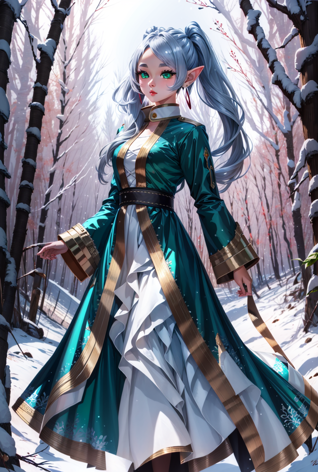 snow maiden,snow maiden|<lora:СнегÑÑоÑка(snow maiden,snow maiden):0.9>, <lora:ФÑиÑен пÑовожаÑÑÐ°Ñ Ð² поÑледний пÑÑÑ(aafrie,long hair, white hair,twintails, pointy ears,earrings, thick eyebrows,(Ñм одеждÑ):0.7>,aafrie,long hair, white hair,2twintails, pointy ears,earrings, thick eyebrows,small breasts, green eyes, anime style, anime colors,detailed anime,animeHD, anime eyes, bigger eyes, high quality anime, large anime pupils, 1girl in full growth, best quality, masterpiece, ultra-detailed, high quality,perfect anatomy, perfect full body, (detailed full body), good eyes, perfect face, pretty face