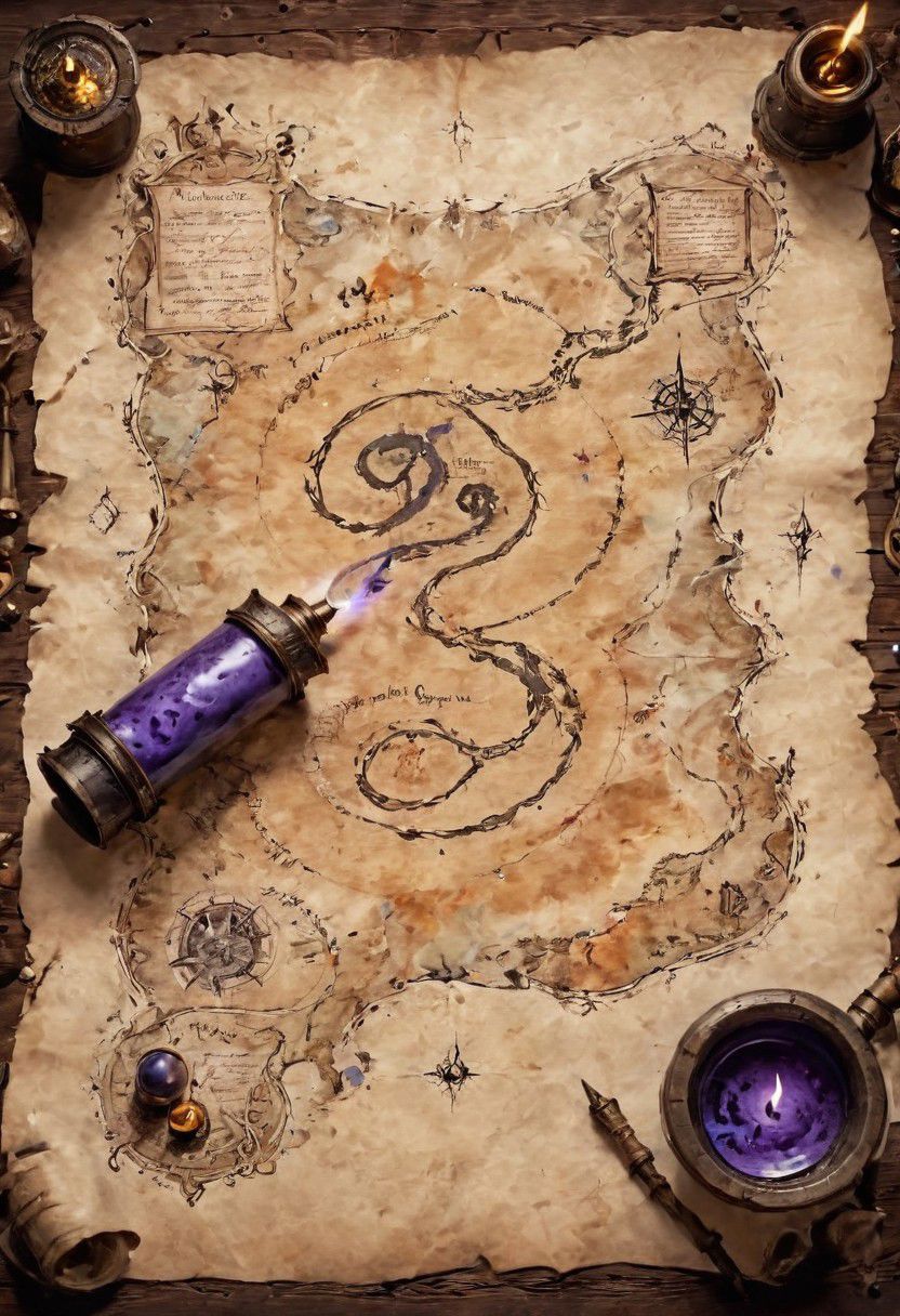 old magic scroll style ink illustration of a spell, on parchment, map sitting on a wizard s desk, ink splashes, ink stains, ink smears, faded ink, magical runes , pantless,